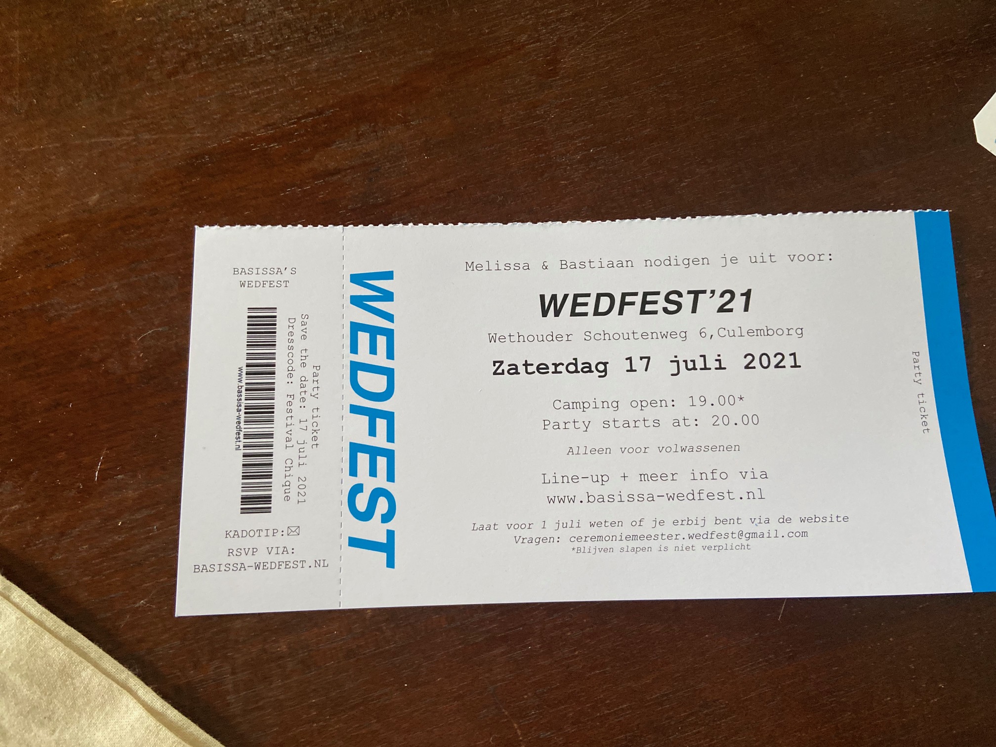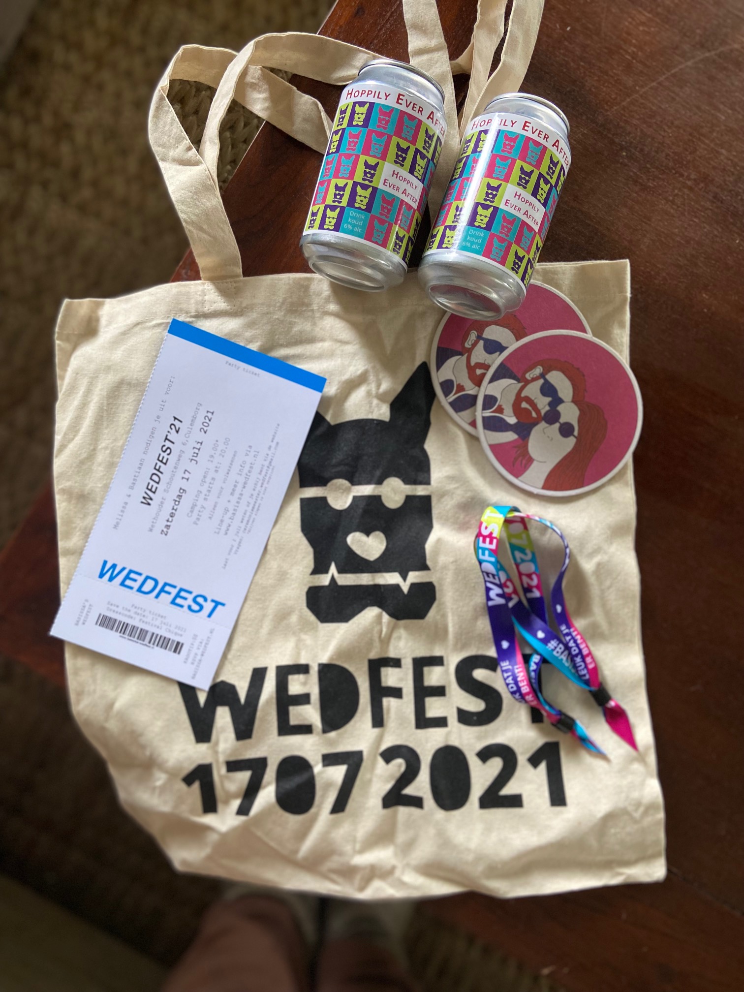 In de fotoslider zie je alle producten die onze gasten kregen voor, tijdens en na onze bruiloft.